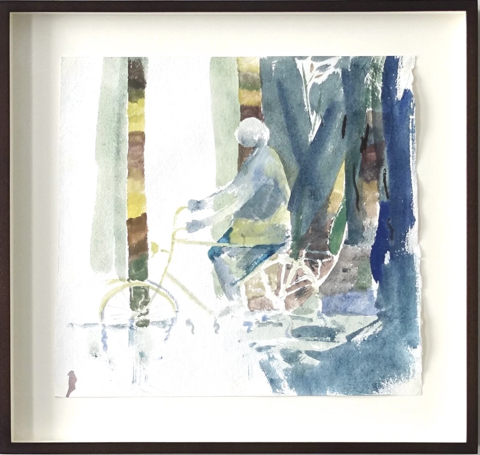 Nick Goss, Cyclist, 2018, Watercolour on paper, 38.5 x 40.5 cm framed